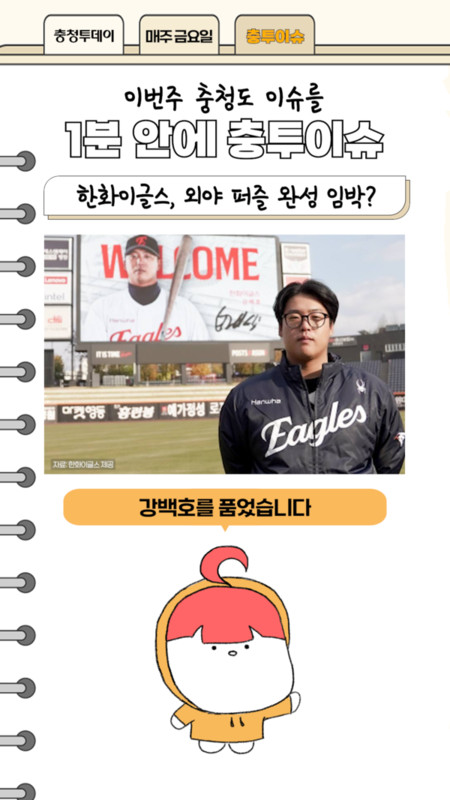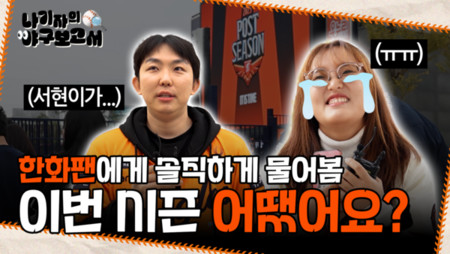[충청투데이 나예원 기자] 2025년 한화이글스는 힘껏 날아올랐다.19년 만의 한국시리즈 도전은 문턱에서 멈췄지만, 그 과정은 팬들에게 충분히 값진 시간이었다. 지난 한국시리즈 4차전 직관을 위해 야구장을 찾은 팬들에게 올 한 해 한화이글스를 응원한 소감을 물어보았다.Q. 올해 한화이글스는 어떤 팀이었나요?관악구에서 온 김서영(가명·26)씨는 “야구장에 오면 꼴찌팀이라고 놀림받을 때가 많았는데, 올해는 정말 꿈같았다”며, “2025 시즌 내내 선수들이 보여준 투지 덕분에 나도 힘을 낼 수 있었다”고 말했다.Q. 한국시리즈까지 올 거