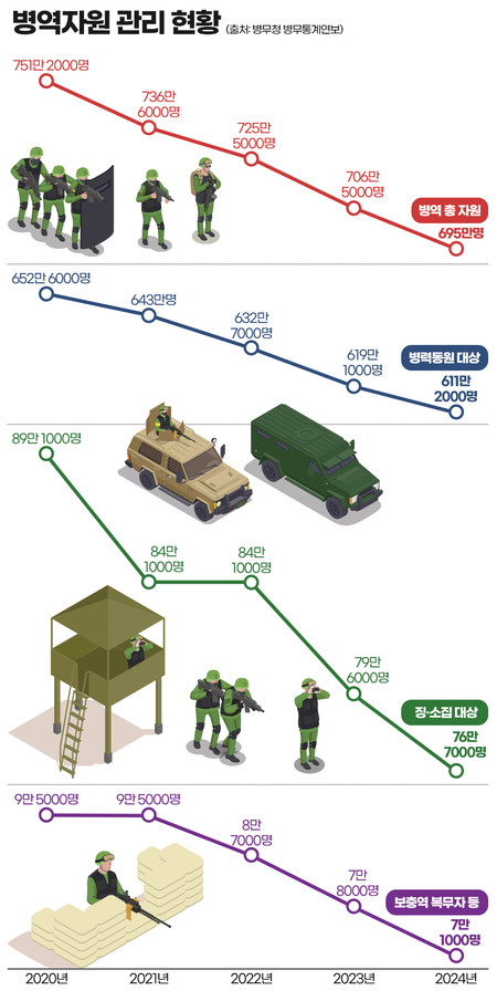 [충청투데이 조사무엘·권오선 기자] 자운대 재창조 프로젝트의 정상화가 필요한 이유는 병역자원 급감, 시설 노후화 위기에 대응할 국방혁신 과제이자 지역 균형발전을 견인할 대안이라는 점에서다.물론 단순한 부대 재배치와 군 시설 현대화에 그치지 말고 국방산업과 도시성장을 연계한 전략적 공간 재구조화가 추진돼야 한다는 지적도 나온다.30일 병무청에 따르면 우리나라 병역자원은 최근 5년 새 급감세를 보이고 있다.실제 병력동원·징소집 대상, 보충역 복무자 등을 포함한 국내 병역자원은 2020년 751만 2000명에서 지난해 695만 명으로 5