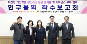 [충청투데이 조사무엘 기자] 대전시의회 건강하고 안전한 도시연구회는 31일 ‘대전형 개인맞춤 정신건강 통합 플랫폼 및 거버넌스 구축’ 연구용역 착수보고회를 열었다.이날 보고회에는 연구회장인 김민숙 의원(더불어민주당, 비례)을 비롯해 김영삼 의원(국민의힘, 서구2), 이금선 의원(국민의힘, 유성구4), 방진영 의원(민주당, 유성구2)이 참석했으며, 연구용역 수행을 맡은 강태원 충남대 교수가 주요 연구 내용과 추진 계획을 발표했다.이번 연구용역은 대전시 정신건강의 현황과 위험 요인을 분석하고, 지역 거버넌스와 연계한 통합 정신건강 관리