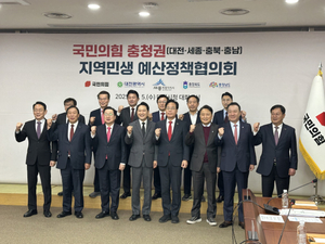 [충청투데이 이심건 기자] 대전과 세종, 충북, 충남 등 충청권 4개 시도와 국민의힘이 내년도 국비 확보, 지역 핵심 현안 해결을 위한 공동 대응에 나선다.충청권 4개 시·도와 국민의힘은 5일 대전시청에서 ‘충청권 지역민생 예산정책협의회’를 열고 내년도 예산 반영과 지역 핵심 과제 추진을 위한 협력 방안을 모색했다.특히 내년 지방선거를 앞둔 상황에서 당 지도부가 한 자리에 모인 이날 4개 시도는 “국가 성장축으로서 충청권 역할을 확실히 해야 한다”며 한목소리를 냈다.회의에는 장동혁 국민의힘 대표와 송언석 원내대표, 김도읍 정책위의장