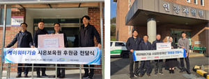 [충청투데이 조선교 기자] 케이워터기술㈜은 대전 서구 중증장애인 거주 시설인 연광자립원과 시온보육원에 지난해에 이어 올해도 후원금을 전달했다고 20일 밝혔다.후원금은 와상 장애인의 특성을 고려한 맞춤형 가구 교체, 보호매트 설치 등 시설 환경 개선에 사용될 예정이며 보육원 아동들의 복지, 문화 활동, 의료비 등 지원에도 쓰일 예정이다.정승용 케이워터기술 대표는 “앞으로도 지역사회 취약계층에 실질적인 도움이 될 수 있게 지속적으로 지원을 이어갈 것이며 지역과 함께 성장하는 공기업 자회사로서 사회적 책임을 다하겠다”고 말했다.케이워터기