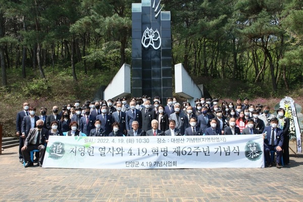 단양군은 4·19 혁명 열사인 고(故) 지영헌 동문을 추모하기 위해 2006년 4월 단양읍 대성산 기슭에 추모공원 및 추모비를 준공하고 열사를 추모해 오고 있다.