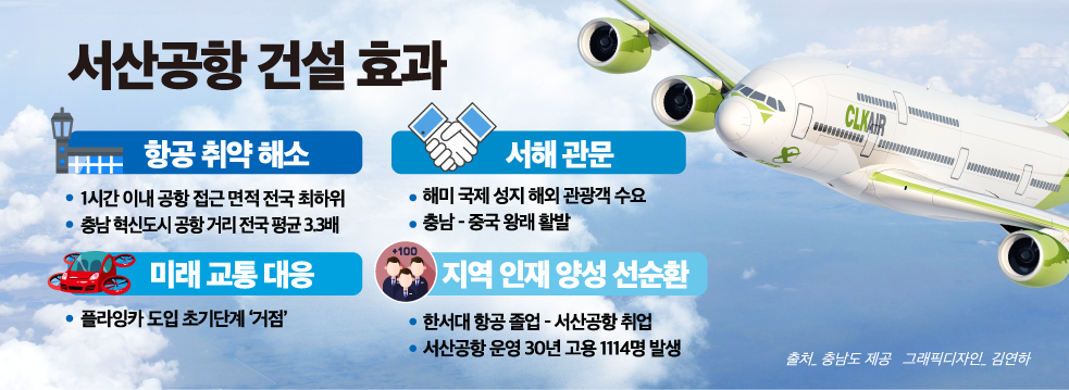 서산공항 건설로 예상되는 고용 효과는 건설기간(4년) 590명과 운영기간(30년) 1114명 등 1704명이다.
