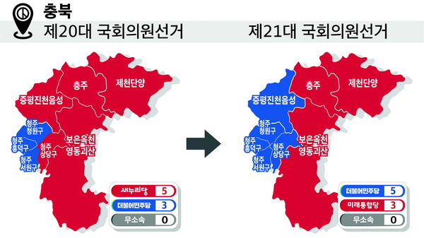 지역정가에선 5선 국민의힘 정우택 의원(청주 상당)과 더불어민주당 변재일 의원(청주 청원)의 국회 재입성 여부에 큰 관심을 보이고 있다.