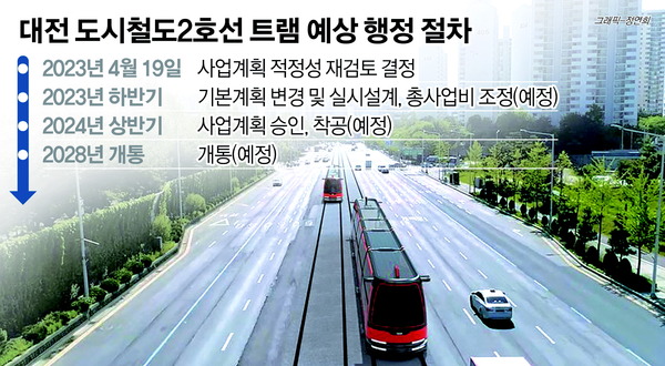 한편 2028년 개통이 예정된 대전 도시철도 2호선 트램은 총 연장 38.1㎞(본선 34.9㎞, 지선 3.2㎞)에 정거장 45개소 등으로 추진되고 있다.