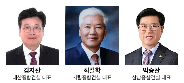 이번 선거는 일찌감치 출마의사를 내비쳤던 김지찬 태산종합건설㈜ 대표, 최길학 서림종합건설㈜ 대표, 박승찬 삼남종합건설㈜ 대표(기호순) 등 3명의 후보가 한 치 앞 결과를 예측할 수 없는 치열한 3파전 양상을 보였다.