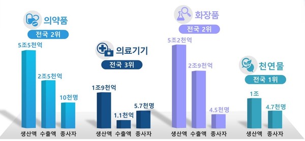 이차전지의 경우 전국 생산액의 48%(10조 7000억원), 종사자수 전국 1위(10만 700명), 기업수 전국 3위(304개) 기록을 갖고 있다.