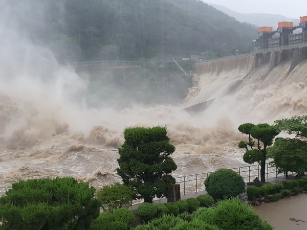 [충청투데이 김진로 기자] 충북 괴산과 충주지역에 지난 13일부터 15일까지 350㎜가 넘는 폭우가 쏟아지면서 댐이 넘치는 월류 현상이 발생했다.