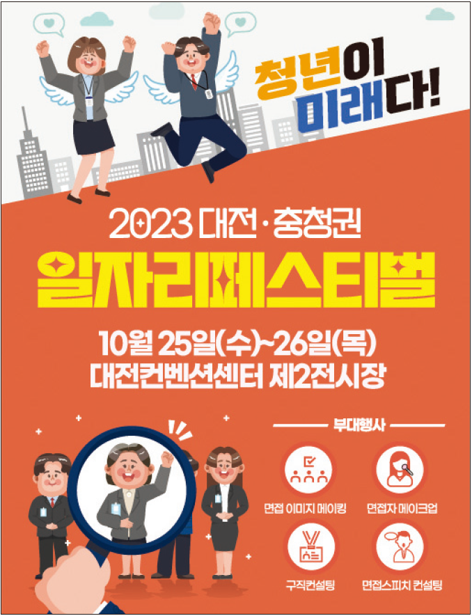 청년 실업이 큰 사회적 문제로 대두되는 가운데 충청권 청년과 구직자들에게 맞춤형 일자리 정보 제공을 위한 ‘2023 대전·충청권 일자리 페스티벌’이 개최된다.