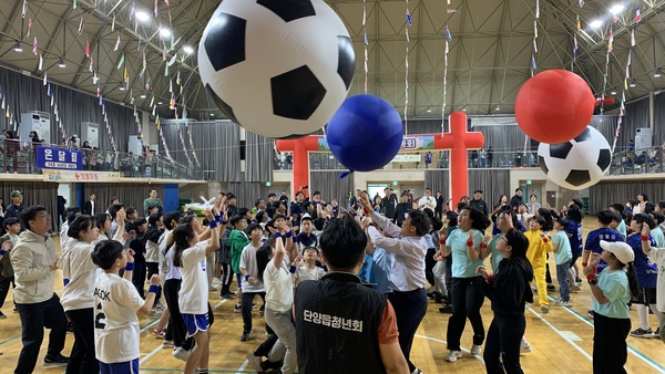 특히 이날 단양교육지원청은 틈새시간에 놀이를 언제든지 할 수 있도록 운동장 구석구석 프로그램도 선보였다. 이 프로그램은 윷놀이, 무궁화꽃이 피었습니다, 투호 놀이 등 특별한 운동능력이 없어도 누구나 함께 즐길 수 있는 놀이들로 구성됐다. 7개 학교별 노래, 연주, 댄스 등 장기자랑도 펼쳐졌다.