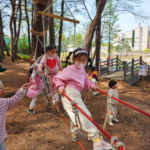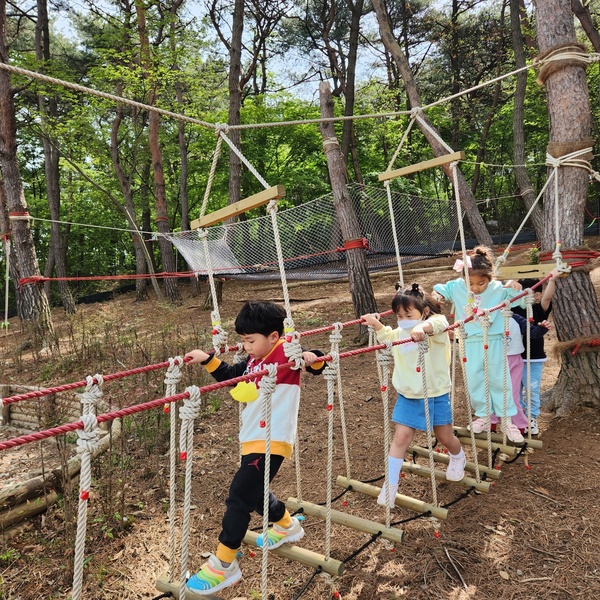 체육센터 1층은 유아의 대근육 활동을 촉진할 수 있는 시설로 구성돼 있다. 구체적으로 쑥쑥 자람터, 꼬꼬마 풋살장, 쑥쑥 놀이터, 디지털 스포츠 시설이 마련돼 있다. 유아들은 이곳에서 즐겁게 뛰어놀며 신체를 인식하고 조절하는 능력을 기른다. 특히 디지털 스포츠 시설에는 인공지능 기기가 설치돼 있어, 유아들이 설치된 기기를 사용하며 창의력과 상상력을 키워나갈 수 있도록 구성했다. 체육센터 2층 ‘야호~ 탐험놀이터’에는 유아들이 모험가가 돼 친구들과 함께 상상의 모험을 할 수 있는 공간이다. 유아들은 오름동산, 모험절벽, 숲 속정글, 동화마을, 바다세상 놀이터에서 모험과 탐험을 즐길 수 있다. 실내뿐 아니라 야외에서 계절과 자연을 오감으로 느낄 수 있는 유아숲체험원도 마련돼 있다. 이곳에는 집라인, 숲그네, 하늘 해먹 등 9가지 종류의 밧줄 놀이시설물이 설치돼 있어 유아들의 신체 발달을 자연스럽게 유도한다. 유아들은 4계절의 자연과 오감을 느끼면서 자연 생태 체험활동을 즐길 수 있다.