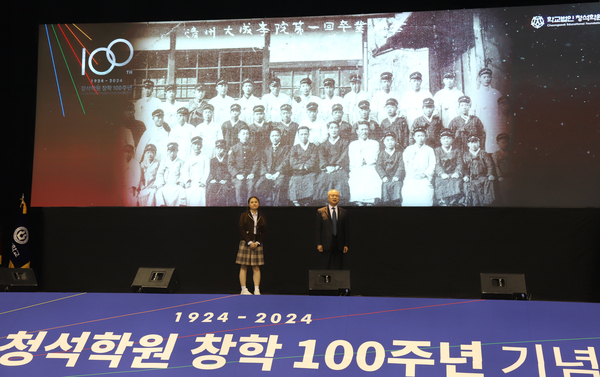 [충청투데이 김진로 기자] 학교법인 청석학원 창학 100주년을 기념하는 기념식이 지난 3일 오후 청주대학교 석우문화체육관에서 성대하게 개최됐다.