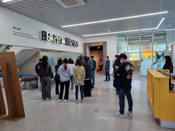 충북 지역에서 환경교육을 공감하고 체험할 수 있는 대표적인 장소로 이번 환경교육주간에 와우환경교육센터 방문을 추천한다. 전국 유일 교육청 자체 예산으로 만든 환경교육 전문기관으로, 다양한 프로그램과 체험을 통해 환경에 대한 이해를 높일 수 있다. 그중 와우환경교육센터의 입구에는 ‘기후위기 시계’가 설치되어 있는데, 이 시계는 기후 한계치(지구 평균기온이 1.5℃ 상승)까지 남은 시간을 표시하는 시계다. 2024년 6월 5일 기준으로, 이 시계는 5년 47일 21시 47분을 가리키고 있다. 그 수치의 남은 시간은 어제보다도 줄어들었다.이런 이유에서일까? 입구에 들어설 때면 어김없이 한참을 생각하게 만든다. ‘나는 이 시계를 늘리는데 기여했는가? 줄어들게 하였는가?’ 와우환경교육센터의 체험시설을 돌아보면서 이 문제를 고민했고, 지금도 함께 고민하고 있는 교사들의 목소리와 함께 배우며 성장하고 있는 학생들의 이야기가 낮게 위치한 문열림 버튼처럼 중저음으로 깊은 울림으로 다가올 것이다.