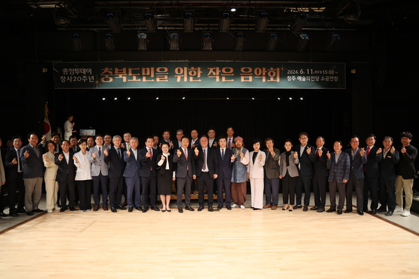 이에 충청투데이는 도민들에게 감사와 고마움의 마음을 전하기 위해 ‘창사 20주년 기념식’과 ‘충북도민과 함께하는 작은 음악회’를 마련했다.