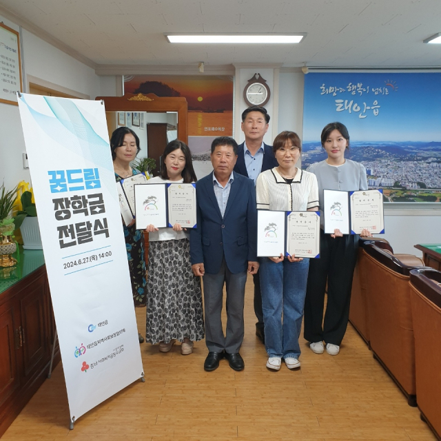 이번 ‘꿈드림 장학금’은 학교장 추천을 통해 성실히 학업에 임하는 태안읍 저소득 중·고등학생 16명(중학생 8명 각 30만 원, 고등학생 8명 각 50만 원)에게 전달됐다.