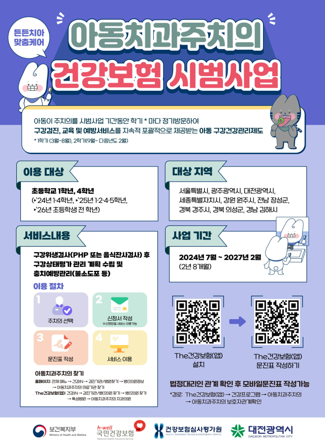 [충청투데이 박영문 기자] 아동에게 지속·포괄적인 구강검진, 교육·예방서비스를 제공하기 위한 '아동치과주치의 건강보험 시범사업'이 대전에서 시행된다.