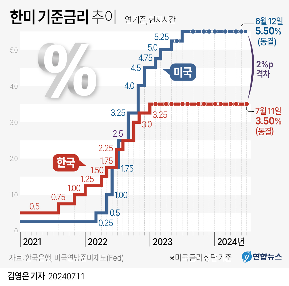 이에 대해 금융권에서는 미국 FOMC의 9월 금리인하 가능성이 높게 점쳐지는 만큼 미국의 기준금리 인하가 단행된 후 금통위의 기준금리 조정이 나타날 것으로 전망했다.