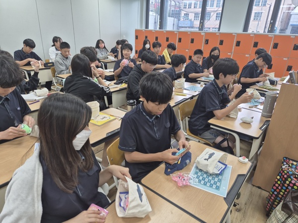 천안북중학교 Wee 클래스에서는 학생들의 자해를 예방하고, 건강하게 마음을 다룰 수 있는 방법을 찾는 마음돌봄 주간을 지난 4~18일까지 2주간 운영했다. 마음돌봄 주간은 오감을 활용해 자신의 감각을 깨우고, 스트레스에 어떻게 대처해야 하는지 탐색하는 활동으로 구성됐다. 학생들의 우울, 불안, 분노 등 부정적인 정서를 완화시키기 위해 마련한 이번 행사에서는 나일락 자해예방 교육, 오늘 마주봄 생명존중 교육, 마음 돌봄 공간(수딩존) 체험하기 등이 진행됐다. 마음돌봄 통해 부정적인 감정을 어떻게 긍정적으로 해소하고 다루어나갈 수 있는지 학생들이 직접 체험해 볼 수 있는 기회의 장을 마련한 것이다. 이 중 1학년 학생을 대상으로는 총 2차례에 걸쳐 자해예방 심리 교육인 ‘나일락 자해예방교육’ 프로그램을 진행했다. 나일락 자해예방교육은 국립공주병원에서 개발한 변증법적행동치료를 기반으로 하는 실습형 학생 맞춤 프로그램이다. 나일락 프로그램은 ‘나를 매일매일 알아가는 즐거움’의 줄임말로 학생들이 생활 중 경험할 수 있는 고통스러운 정서경험을 조절할 수 있도록 다양한 활동들을 배우고 실습하도록 구성했다. 수업이 끝난 후 학생들은 "오늘 배운 냉동복근 중에서 복식호흡을 하고 나니 정말 마음이 편안해져서 신기했다. 감정에 대한 교육을 그냥 말로만 설명하는 것이 아니라 진짜로 스트레스를 다룰 수 있는 파우치를 주시고, 어떻게 해결해야 하는지도 알려줘서 좋았다. 마음돌봄 키트가 좋았고, 화가 났을 때 어떻게 마음을 다스리는지 알아서 유익했다’ 등의 소감을 나타냈다. 3학년 학생을 대상으로는 오늘 마주봄, 생명존중 교육을 진행했다. 오늘 마주봄 프로그램은 충남교육청에서 개발한 총 6차례에 걸친 생명존중 매뉴얼로 학생들이 자신의 발달 단계적 특성과 생각, 감정의 변화에 대한 이해를 바탕으로 강점 발견, 자존감 향상, 대인관계 갈등관리 능력 향상을 돕는 프로그램이다. 이 프로그램에서는 ‘봄이’라는 토끼 캐릭터가 자신의 마음을 지키고 지지하는 방법을 다양한 활동과 함께 소개한다. 여러 가지 교구와 탭을 활용한 교육이 가능하고 특히 마주온을 활용해 상호작용이 가능한 교육방법을 가미해 학생들의 흥미와 재미를 이끌어 냈다. 학생들은 "친구들과 잘 지내기 위해서는 내 마음이 지금 어떤 상태인지 알아차리는 것이 중요하다는 것을 배웠고, 나의 마음그릇 모양 만들기 활동이 참 재미있었다"며 "활동지가 예뻐서 잘 간직하고 싶다. 내년에도 후배들에게 추천해주고 싶은 수업이다"라며 만족감을 드러냈다.