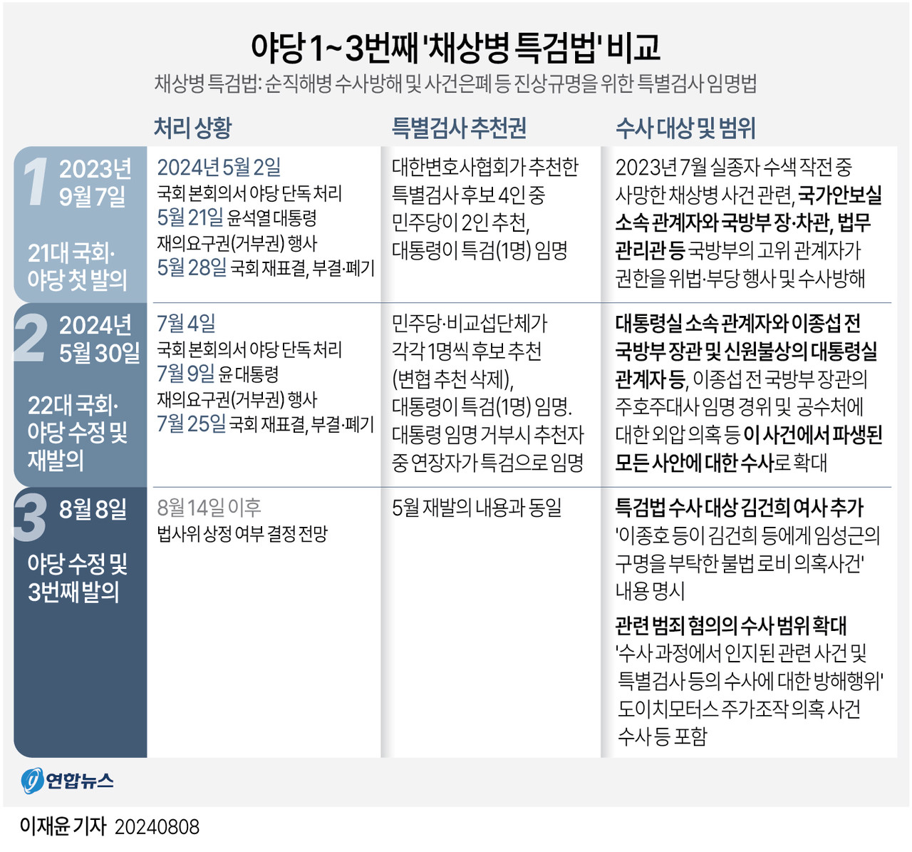 당시 박 원내대표는 채해병 사망 사건의 진상규명을 위해 한 대표가 제안한 ‘제3자 추천안’도 수용할 수 있다고 밝힌 상태였고 이재명 대표 역시 당선 직후 제3자 추천안을 수용할 의사가 있다고 강조한 점을 들어 한 대표를 압박했다.