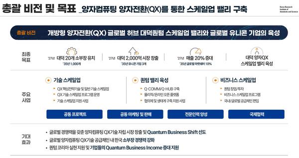 양자소부장 및 양자허브(Q-Hub)를 구축해 대덕퀀텀밸리의 양자비즈니스 생태계를 조성하고, 양자전환을 통해 국내 기업들의 사업 확장과 글로벌 시장 진출을 돕겠다는 구상이다.