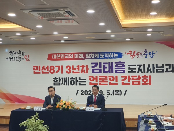 김 지사는 5일 민선 8기 시군방문 3년차 11번째 일정으로 홍성군을 찾아 홍주 문화회관에서 언론인 간담회를 진행했다.