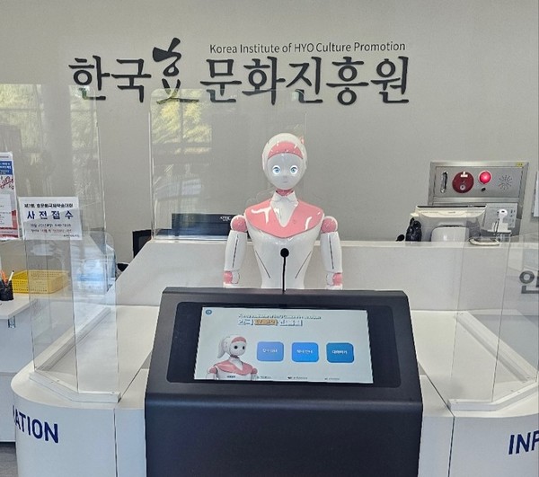 한효진 1층 안내데스크에 효 전시체험관 및 행사 안내 서비스를 위한 AI 휴머노이드 로봇 ‘효진’이 도입됐다.