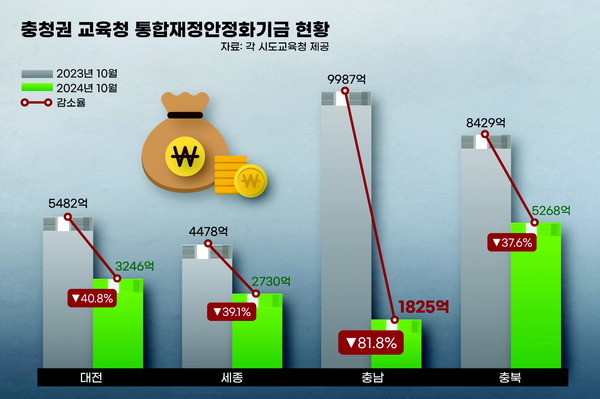 충남도교육청 관계자는 "아주 심각한 상황이다. 2024년도 본예산과 1차 추경 이후 기금 사용 한도가 초과됐다"며 "지난해 세수 결손으로 올해 시설비 등을 조정했는데 이제 기금까지 막혀 교부금 내 다른 사업을 축소해야 하는 상황"이라고 호소했다.