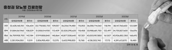충청권 당뇨병 환자가 매년 증가세를 보이며 지난해에는 43만명을 넘어선 것으로 나타났다.