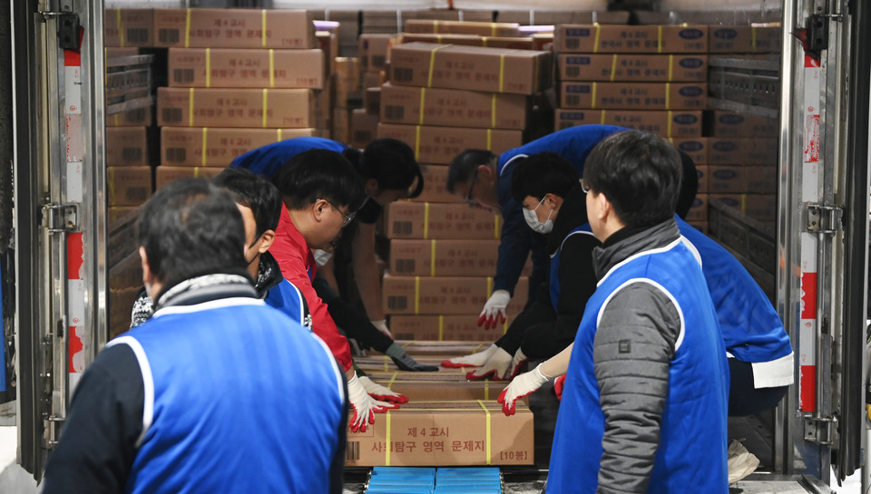 2025학년도 대학수학능력시험을 사흘 앞둔 11일 세종시의 한 인쇄공장에서 관계자들이 수능 문제지와 답안지를 차량에 싣고 있다. 김주형 기자 kjh2667_@cctoday.co.kr [충청투데이 김주형 기자] 2025학년도 대학수학능력시험을 사흘 앞둔 11일 세종시의 한 인쇄공장에서 관계자들이 수능 문제지와 답안지를 차량에 싣고 있다. 김주형 기자 kjh2667_@cctoday.co.kr