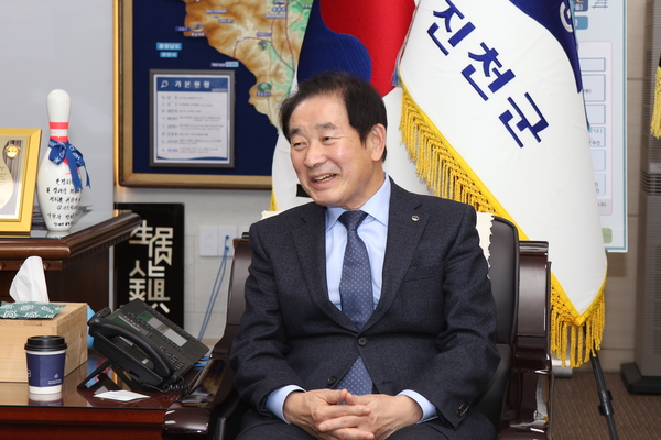 "진천군은 투자유치, 일자리 증가, 인구증가, 정주환경 개선, 재투자로 이어지는 선순환 구조가 안정적으로 자리 잡았다. 그 덕분에 철도, 인구, 경제 등 눈부신 성과가 나왔지만 중요한 것은 ‘지속 가능성’이며 이를 시스템화하는 것이 목표다. 그래서 민선 8기 후반기는 지금까지와는 결이 다른 고차원의 행정을 추진하고 군민 우선의 가치와 철학을 구현하고 있다. 군수로서 일을 시작한 민선 6기는 발전의 뼈대와 기반을 세운 지역발전 1.0의 시기라면 7기부터 현재까지는 큰 발전을 이룬 지역발전 2.0의 시기로 볼 수 있다. 앞으로 민선 8기 후반기는 지역발전 3.0의 시기로 규정하고 양적성장을 바탕으로 질적 성장을 추구하면서 자립적, 내생적, 질적, 지속가능한 발전을 실현해 지역발전의 새로운 패러다임을 전개해 나가고 싶다."