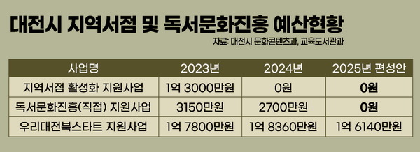 올해 전액 삭감됐던 지역서점 활성화 지원사업 예산은 내년에도 복구가 어려울 전망이고, 대안으로 개최됐던 대전북페어마저도 반짝 행사에 그칠 우려가 커지며 지역서점 생태계가 위축되고 있다.