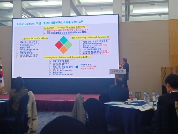 한편 이 자리에서 강사로 초청된 정진섭 충북대 교수(국제경영학과)는 ‘연금술과 ABCD전략’이라는 주제 강연에서 기업에서 민첩성(Agility), 벤치마킹(Benchmarking), 융합(Convergence), 헌신(Dedication) 등의 ABCD전략을 적절히 사용해야한다고 강조했다.