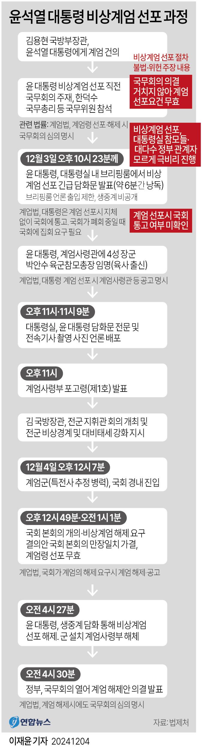 민주당과 야권은 비상계엄 선포를 헌법 유린으로 규정하며 윤 대통령의 즉각적인 퇴진을 촉구했다.
