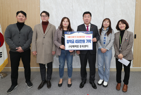 경제형편이 어려운 지역 고등학생들을 위해 써 달라며 장학금 450만원을 청주시에 기탁한 것.