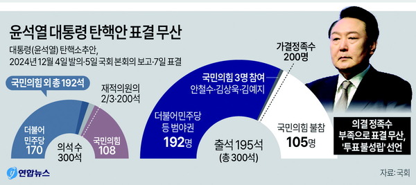 하지만 여당인 국민의힘 의원들이 김 여사 특검법안에 대한 반대표만 행사한 뒤 집단 퇴장하면서 결국 대통령 탄핵안은 의결정족수를 채우지 못해 투표불성립으로 자동 폐기 됐다.