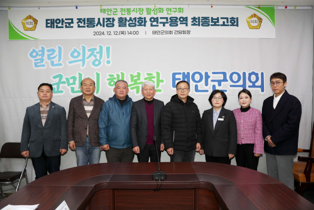 [충청투데이 박기명 기자] 태안군의회 의원연구단체 전통시장 활성화 연구회는 12일 ‘태안군 전통시장 활성화 정책연구 용역’에 대한 최종보고회를 가졌다.