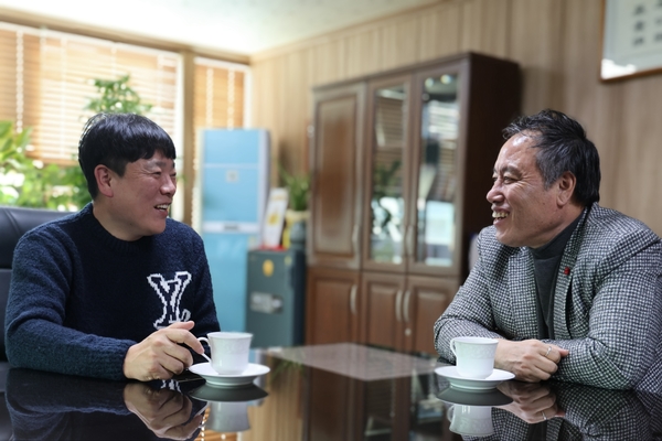 구 대표에게 양송이버섯 분야 최초 농업 마이스터 선정을 축하한다는 인사를 건넸다.