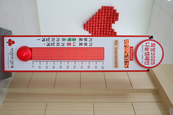 23일 충북사회복지공동모금회(회장 이민성, 이하 충북모금회)에 따르면 이날 현재 ‘희망2025나눔캠페인’ 성금모금이 107억 5900만원을 기록, 사랑의온도 103.5도를 달성했다.