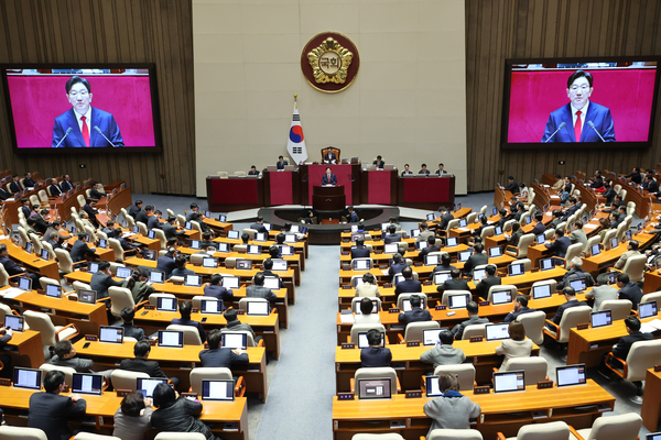[충청투데이 김대환 기자] 국민의힘 권성동 원내대표가 교섭단체 대표 연설을 통해 국정혼란의 주범은 ‘이재명 세력’이라고 주장하자 더불어민주당은 반성 없는 ‘여당 포기 선언문’이라고 비판하며 험한 말을 주고받았다.