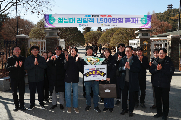 청남대관리사업소는 이날 청남대 돌탑 앞에서 누적 관람객 1500만명 달성을 기념하는 축하행사를 열었다.