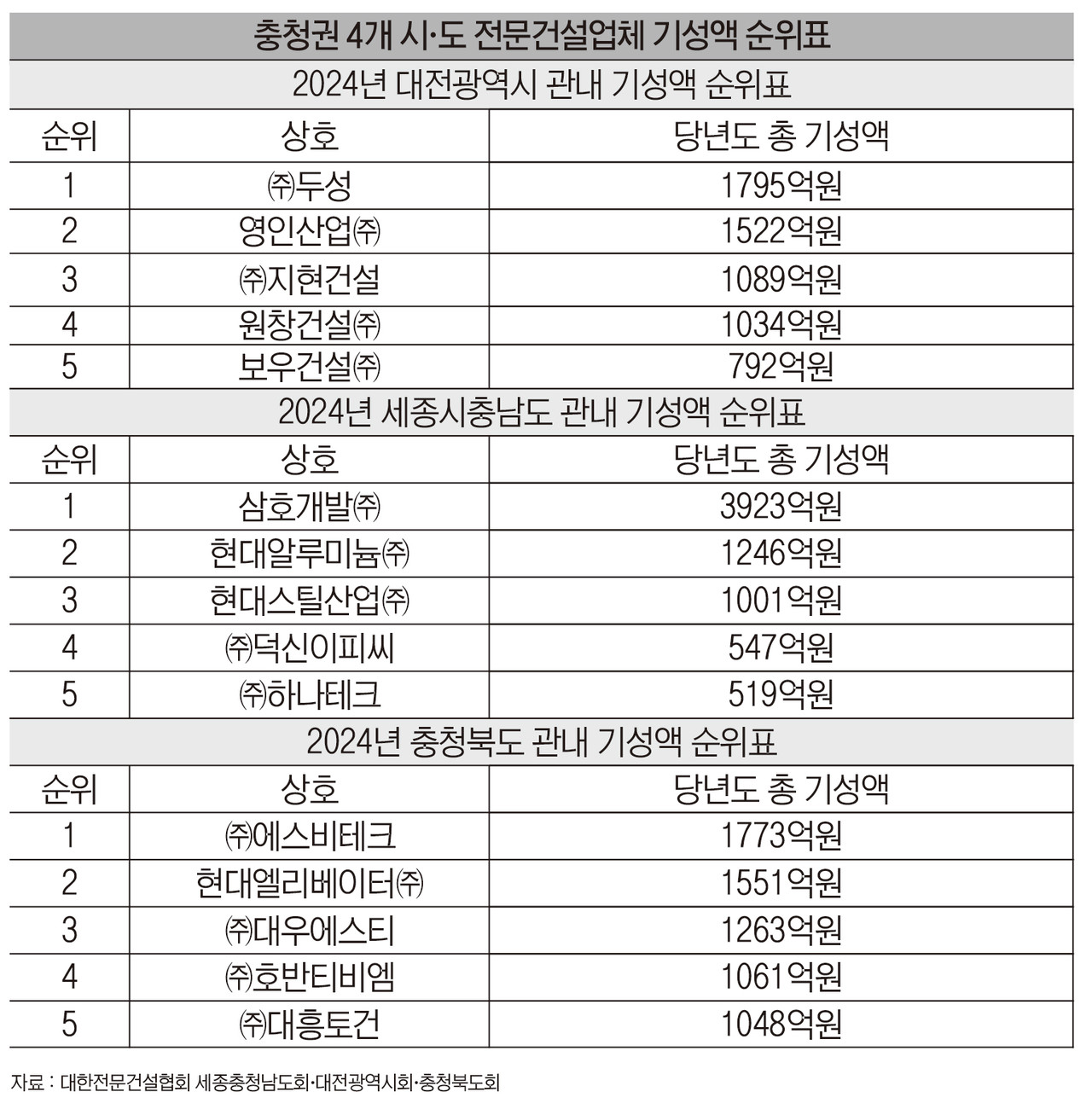 [충청투데이 심형식·박현석·윤경식 기자] 지난해 극심한 건설경기 불황속에서도 충청권 전문건설업계 기성실적은 선방했다.