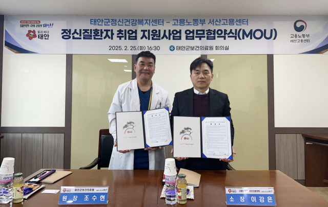 [충청투데이 박기명 기자] 태안군정신건강복지센터가 고용노동부 서산출장소 서산고용센터와 손잡고 관내 정신질환자의 성공적인 자립을 위한 지원책 마련에 나섰다.