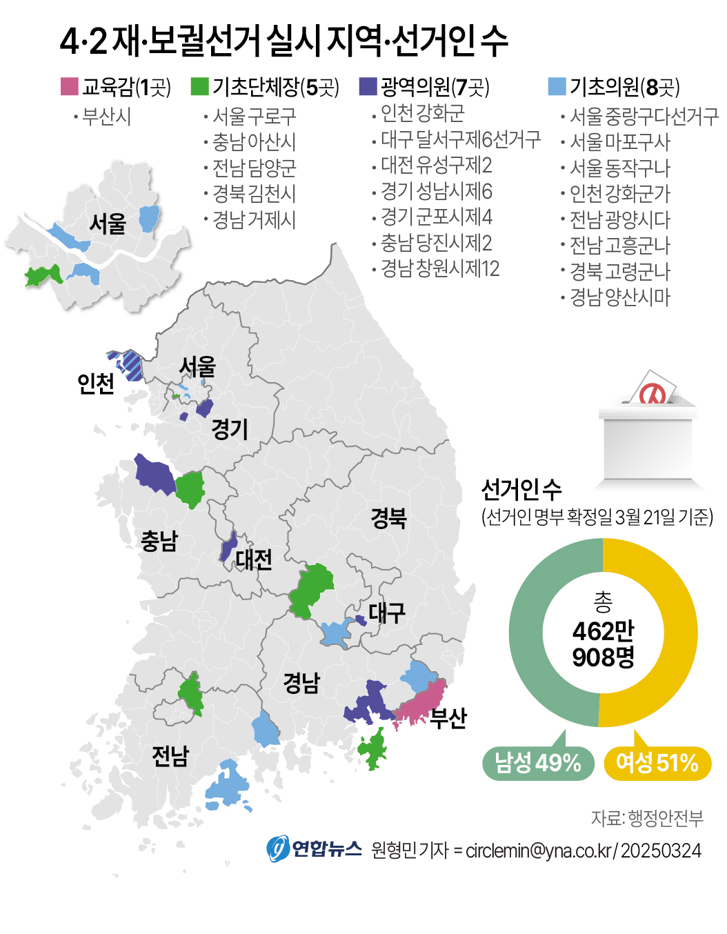 4·2 재보궐선거의 공식 선거운동이 진행되고 있다. 이번주 소위 ‘사법 슈퍼위크’를 맞이하면서 우려처럼 여야의 정쟁만 난무한 가운데 중앙정치 이슈만이 지역 선거운동 현장을 채우고 있다. 이번 재보궐선거는 계엄이후 탄핵 정국에서 치러지는 첫 전국 단위 선거다. 향후 정치 풍향계를 가늠할 수 있는 척도로 각 당에 중요한 민심 지표로 활용될 전망이다. 한덕수 국무총리 탄핵소추 기각에 이어 이재명 민주당 대표 2심 결과, 윤석열 대통령 탄핵 선고일 여부 등 대형 정치권 이슈가 몰려있는 주간이다.