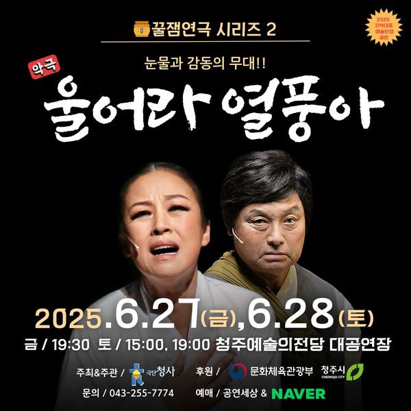 [충청투데이 김진로 기자] 지난해 제42회 대한민국연극제에서 단체상, 금상을 비롯해 4관왕을 수상한 ‘극단 청사’가 올해 문화체육관광부 선정 ‘2025년 지역대표예술단체’로 선정돼 ‘꿀잼연극 시리즈’ 다섯 작품을 무대에 올린다.