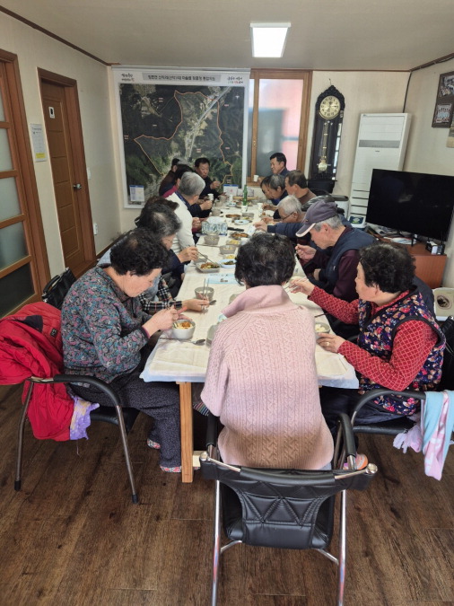 농촌 마을에 살고 계신 어르신들이 거동이 불편하거나 홀로 거주하시는 경우가 많다. 그 날도 어르신들은 회관에 모여 점심을 함께 드셨는데, 그 모습을 보며 한 끼의 식사가 주는 따뜻함과 기쁨을 다시 한 번 느꼈다. 어르신들이 맛있게 드시는 모습은 정말 보기 좋았다.