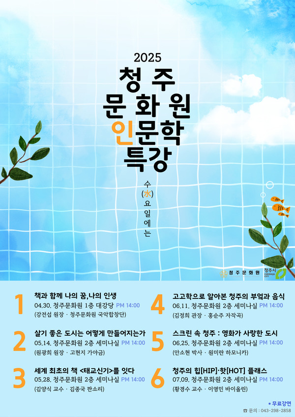 한편 2025 인문학특강은 △4월 30일 강전섭 청주문화원장 △5월 14일 원광희 청주시시정연구원장 △5월 28일 김양식 교수(충북학연구소 자문위원) △6월 11일 김정희 진지박물관 원장 △6월 25일 안소현 지역발전연구소 ‘함께’ 대표 △7월 9일 황경수 청주대학교 교수 강연 순으로 이어진다.