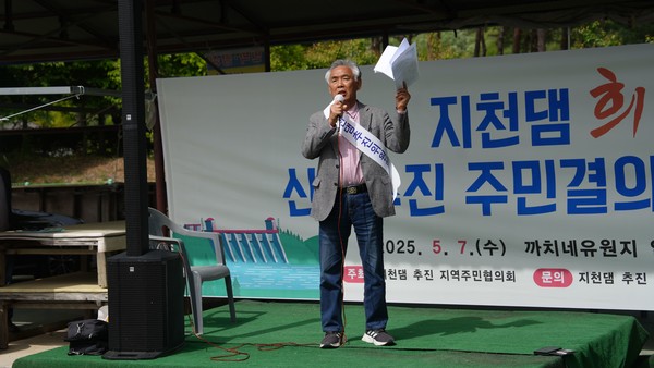 지천댐 건설의 당위성과 필요성을 널리 알리기 위해 마련한 이번 행사는 △주민 활동 경과보고 △전문가 강의 △결의문 낭독 △자유발언 등 순으로 진행했다