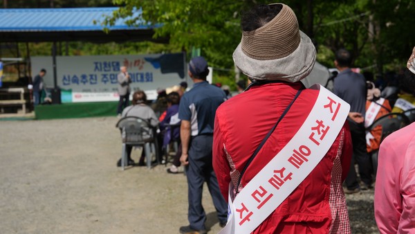 그러면서 "우린 환경부의 규제없는 지천댐 건설을 적극 지지하며 신속한 추진을 강력히 촉구한다"며 "지역의 뜻이 관철될 때 까지 끝까지 단결해 행동할 것"이라고 목소리를 높였다.이성우 지천댐 추진위원장은 "이 자리에 모인 찬성측 주민들의 염원이 정부와 관계기관에 널리 전달돼 조속한 사업 추진이 이뤄지길 바란다"고 말했다.