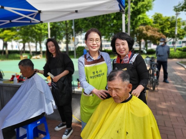 이날 행사장에서는 이미용 봉사와 함께 여성단체협의회원들이 정성스럽게 준비한 간식도 함께 제공했다. 이 행사에는 청주의료원이 동참, 현장에서 어르신들의 건강까지 세심하게 살폈다.