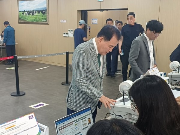 김지철 충남교육감이 29일 내포신도시 홍성낙농협동조합에서 배우자 양현옥 씨와 제21대 대통령선거 사전투표에 참여했다. 사진=권혁조 기자. 김지철 충남교육감이 29일 내포신도시 홍성낙농협동조합에서 사전투표 용지 발급을 위해 지문인식을 하고 있다. 사진=권혁조 기자. [충청투데이 권혁조 기자] 김지철 충남교육감이 29일 내포신도시 홍성낙농협동조합에서 배우자 양현옥 씨와 제21대 대통령선거 사전투표에 참여했다. 사진=권혁조 기자 oldboy@cctoday.co.kr
